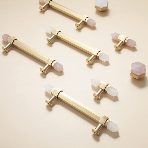 DecorfunhardwareSpecifications: Material: Metal, Crystal Exterior Finish: Brass, Copper Color: White, Pink Handle Type: Knob, Pull Handle Shape: Hexagon...